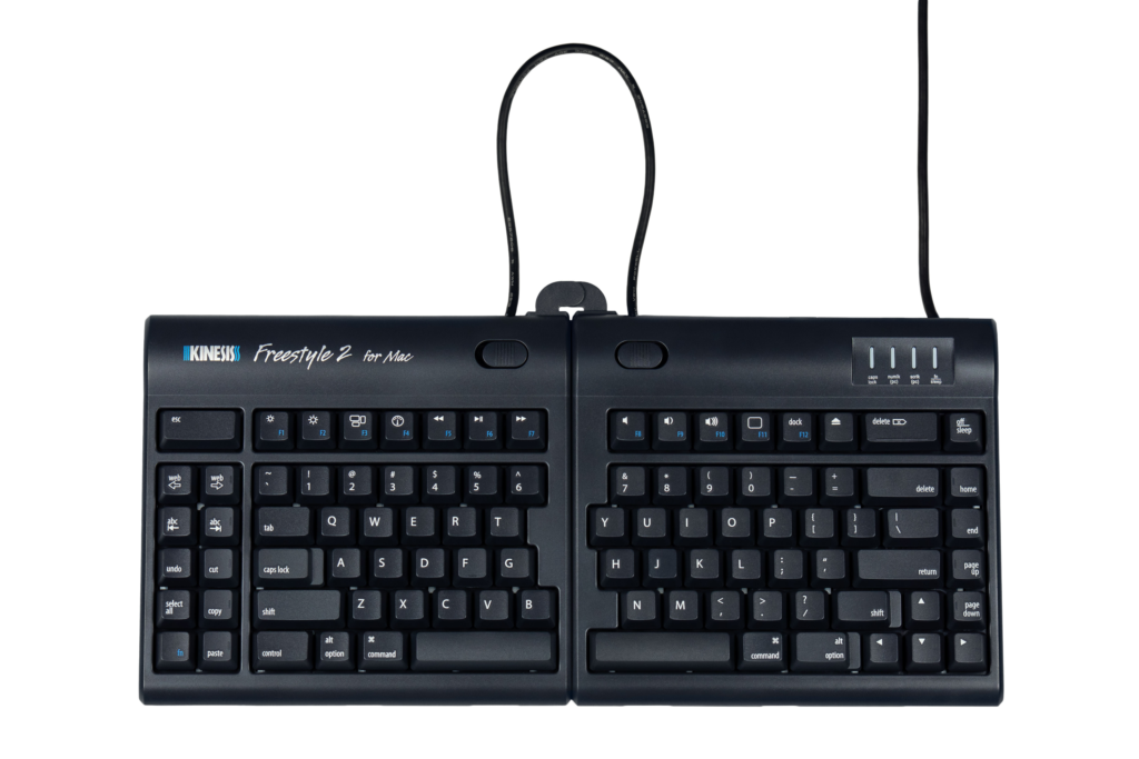 The Freestyle2 is an award-winning split keyboard designed to address the ergonomic risk factors related to typing by adjusting to your body. It features a familiar Mac layout, Mac shortcuts and hotkeys, and a 2-port USB Hub.