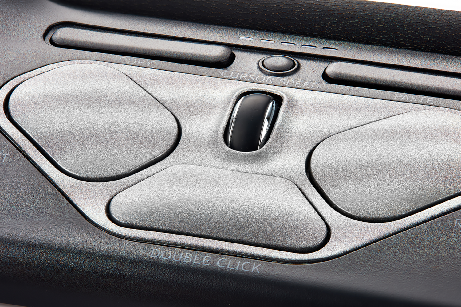 Five centrally-located buttons come pre-programmed to perform everyday, common mouse functions including copy, paste and a ‘one-touch’ double-click; these buttons can be customised to perform shortcuts.