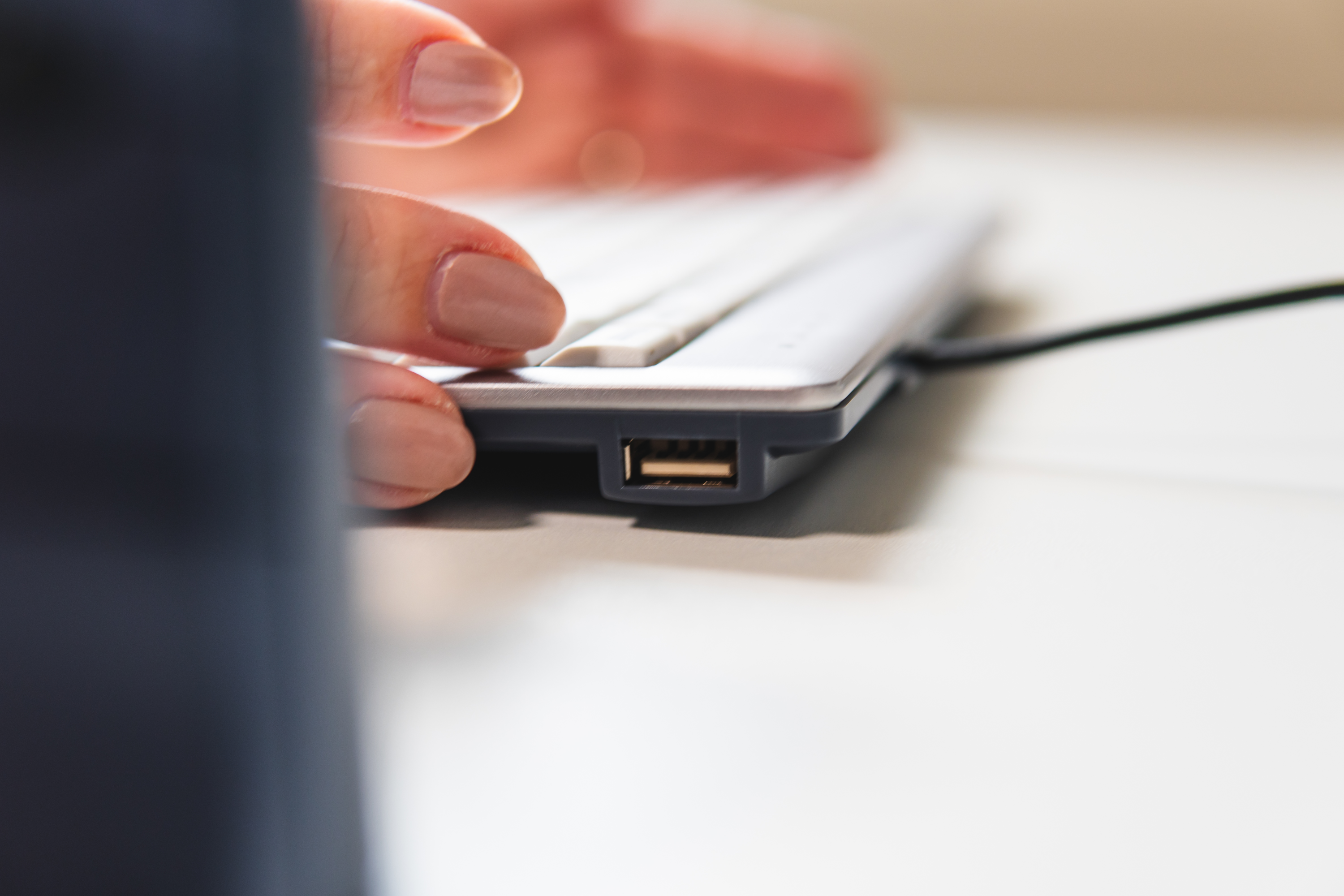 Conveniently located on both sides of the keyboard housing, the UltraBoard 950 Wired features two USB which allow for the connection of a mouse, or other peripherals.